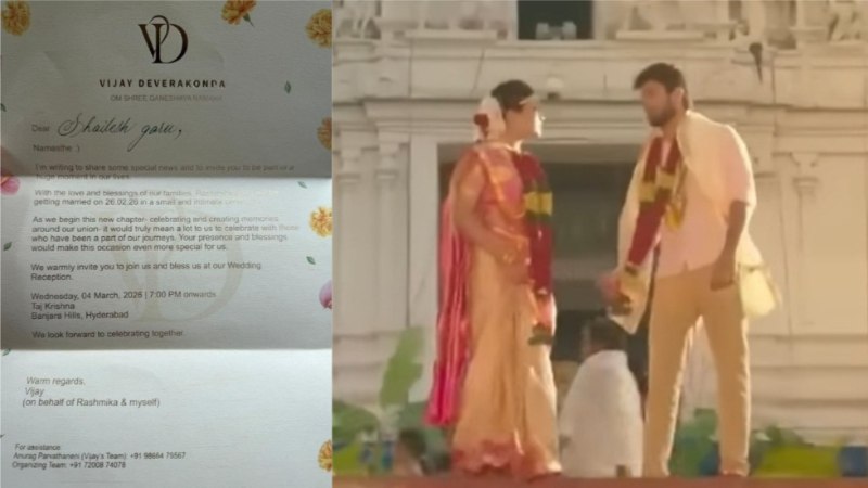 ಬೆಂಗಳೂರು: ನಟಿ ರಶ್ಮಿಕಾ ಮಂದಣ್ಣ ಮತ್ತು ವಿಜಯ್ ದೇವರಕೊಂಡ ಅವರ ಮದುವೆಯ ಆಹ್ವಾನ ಪತ್ರಿಕೆ ಸಾಮಾಜಿಕ ಜಾಲತಾಣಗಳಲ್ಲಿ ಭಾರಿ ವೈರಲ್ ಆಗಿದ್ದು, ಎಲ್ಲೆಡೆ ಇದೇ ಬಿಸಿ ಬಿಸಿ ಚರ್ಚೆಯ ಸು...