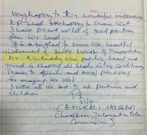 ಈ ಸುಂದರವಾದ/ಪ್ರೇರಣಾದಾಯಕ ಶಾಲೆಯನ್ನು ನೋಡಿ ತುಂಬ ಸಂತೋಷವಾಗಿದೆ, ಈ ಶಾಲೆಯಿಂದ ನಾನು ಅನೇಕ ಉತ್ತಮ ಕ್ರಮಗಳನ್ನು ಕಲಿತುಕೊಂಡಿದ್ದೇನೆ ಎಂಬುದನ್ನು ಹಂಚಿಕೊಳ್ಳಲು ಸಂತೋಷಪಡುತ್ತೇನೆ.ಈ ಕ್ಷೇತ್ರದ ಎಲ್ಲಾ ಶಾಲೆಗಳ ರೂಪುಗೊಳಿಸುವಿಕೆಯಲ್ಲಿ ಸಾರಿಗೆ ಸಚಿವ ರಾಮಲಿಂಗಾರೆಡ್ಡಿ ಅವರು ತಮ್ಮ ಹೃದಯ ಮತ್ತು ಮನಸ್ಸಿನಿಂದ ತೊಡಗಿಸಿಕೊಂಡಿರುವುದು ತಿಳಿದು ಇನ್ನೂ ತುಂಬ ಸಂತೋಷವಾಗಿದೆ.ಅವರ ವಿಧಾನ ಸಭಾ ಕ್ಷೇತ್ರದಲ್ಲಿನ ಎಲ್ಲಾ ಶಾಲೆಯ ಅಧಿಕಾರಿಗಳಿಗೆ, ಮುಖ್ಯಸ್ಥರು ಮತ್ತು ಪ್ರಾಂಶುಪಾಲರಿಗೂ ಧನ್ಯವಾದಗಳು. ಎಲ್ಲಾ ಶಿಕ್ಷಕರಿಗೂ ಮತ್ತು ಮಕ್ಕಳಿಗೂ ನನ್ನ ಹಾರ್ದಿಕ ಶುಭಾಶಯಗಳು ಎಂದು ಬರೆದಿದ್ದಾರೆ.